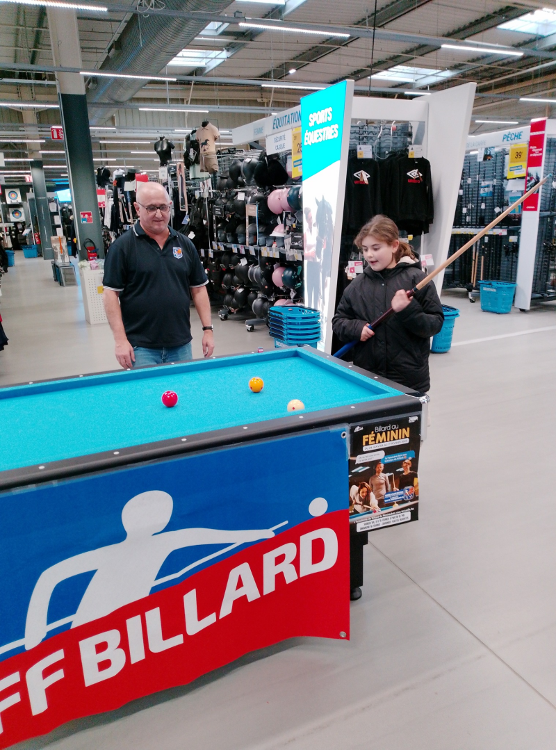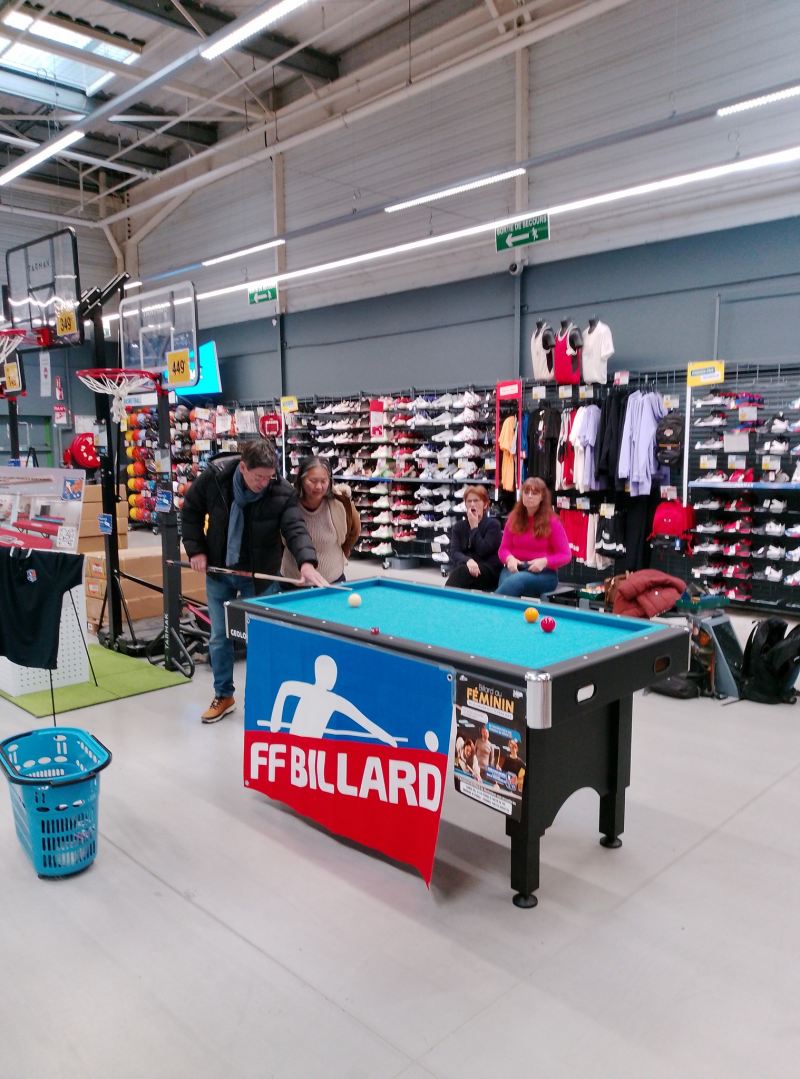 Ce mercredi 29 janvier a marqué le lancement de l'opération "Billard au féminin" chez Decathlon Montauban. Nous y avons présenté notre billard BT 700 et avons réalisé des démonstrations tout au long de la journée. Le public féminin a répondu présent en nombre, ce qui nous a également permis de toucher un large public, y compris des hommes et des enfants. Une journée très productive !