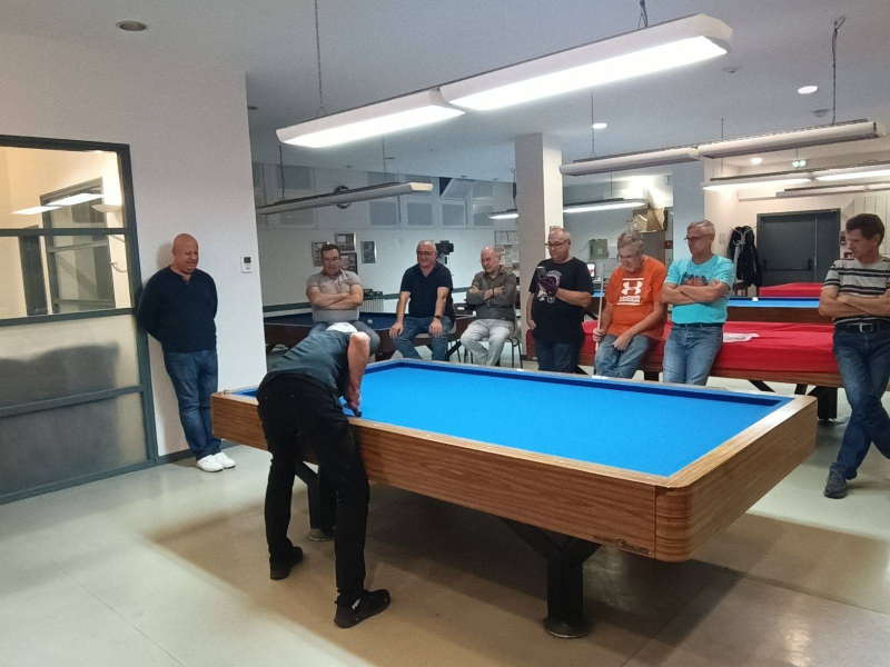 En complément, l'initiation au billard à 3 bandes se déroule le vendredi matin, animée par Philippe et Alain, tandis que le vendredi soir est réservé à l'entraînement des joueurs confirmés, sous la direction de Patrick.